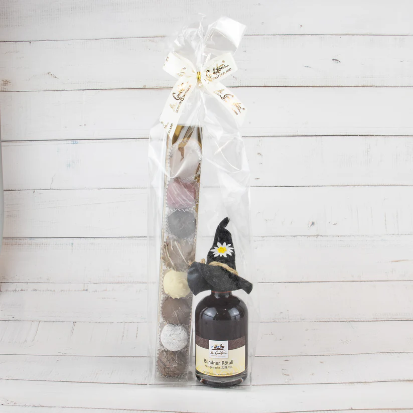 Dieses Set ist das ideale Geschenk für Schokoladenliebhaber und Feinschmecker, die das Besondere suchen. Entdecke die perfekte Kombination aus fruchtigem Rötali und zartschmelzenden Truffes – ein wahrer Genussmoment, der keine Wünsche offenlässt.